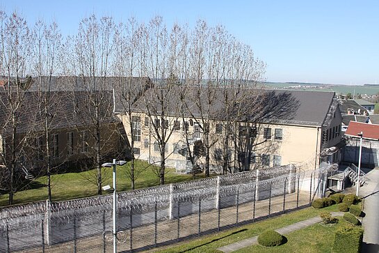 Das Gebäude des offenen Vollzuges liegt außerhalb der Anstaltsmauer.