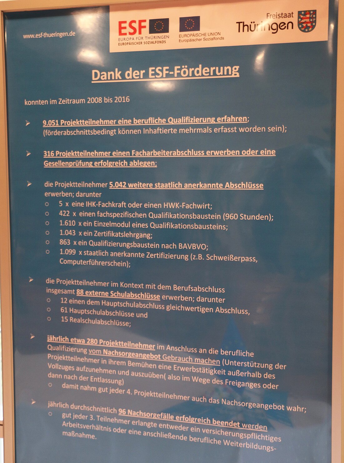 Das Projekt wird mit Mitteln des Europäischen Sozialfonds (ESF) und des Freistaates Thüringen gefördert bzw. finanziert.